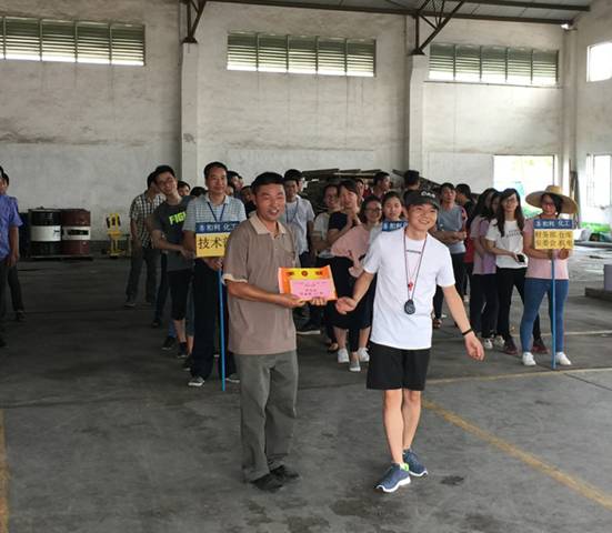本次比赛,各参赛队伍依据公平公正的原则,本着"友谊第一,比赛第二"的精神有序进行。经过激烈的耐力、体力较量,最终总经办、仓库、机电、采购、人事行政、安委会、财务部1队、工业漆车间2队、树脂车间3队、分别获得前三名。比赛结束后进行了颁奖仪式,由和利化工/三盈树脂戴咏新董事长为获得本次拔河比赛第一名的队伍进行了颁奖。