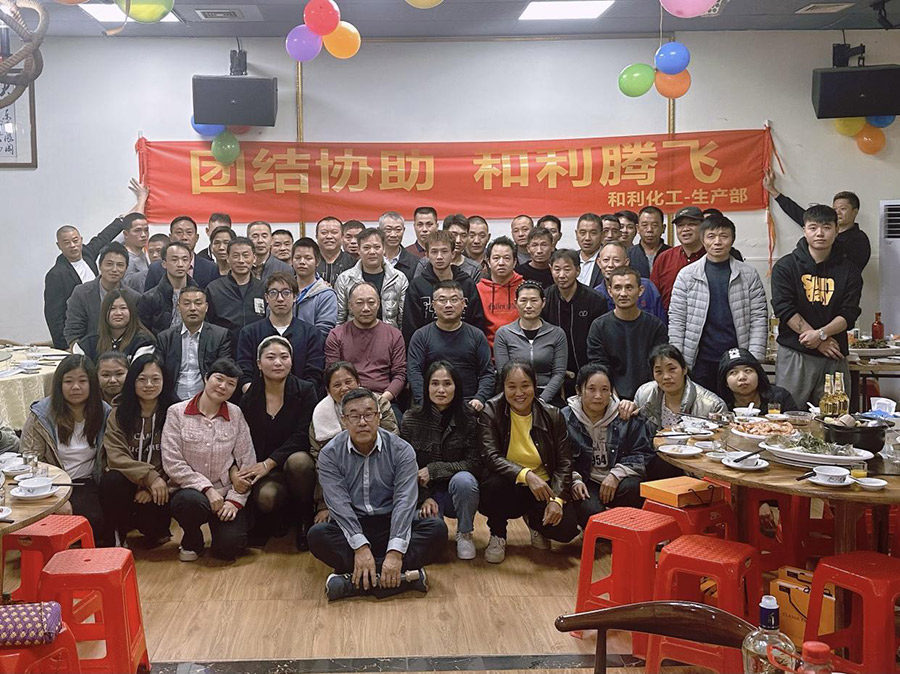 年末岁首,辞旧迎新。转眼间,忙碌的2023年已经过去,充满期待的2024年向我们走来。新的一年,孕育新的目标和希望。近日,和利化工鹤山公司生产部迎新晚宴如期举行,董事长戴咏新、总经理戴志祥、生产部总监李淳哲、工业漆销售部总监方亮、财务部经理刘青焕和行政部经理石秀琴等部门领导携手生产部全体人员欢聚一堂,整个晚宴在充满喜庆祥和、其乐融融的氛围中拉开序幕。