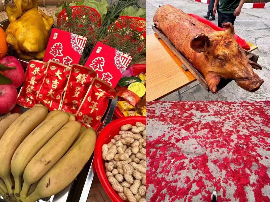 首先,开工仪式的第一项是拜神。大家虔诚地鞠躬、上香、烧元宝纸蜡,祈求新的一年里企业能够平安顺遂、生意兴隆。这一环节不仅体现了对广东传统文化的尊重与传承,也寄托了大家对未来的美好期望。