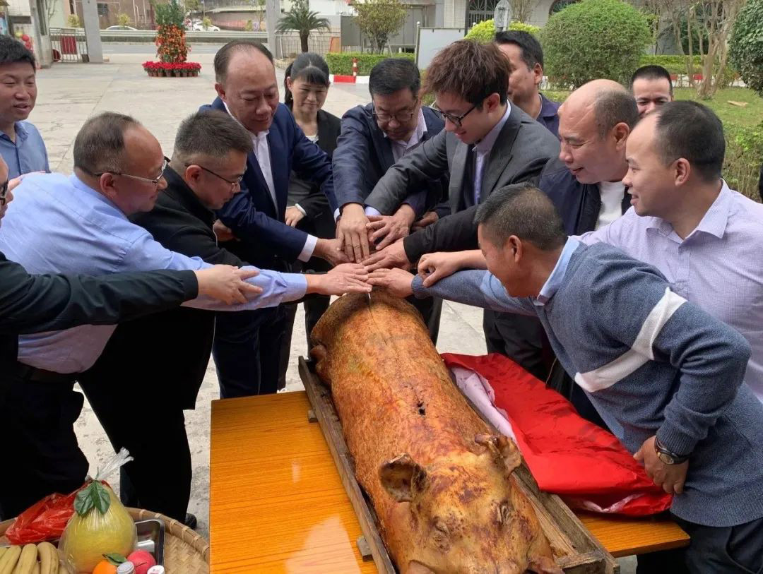 烤乳猪,寓意招财进宝、吉祥如意,而切乳猪也是有“从头斩(赚)到尾”的意思。新的一年在和利高层管理人员的带领下,公司必定猪笼入水,从头赚到尾。