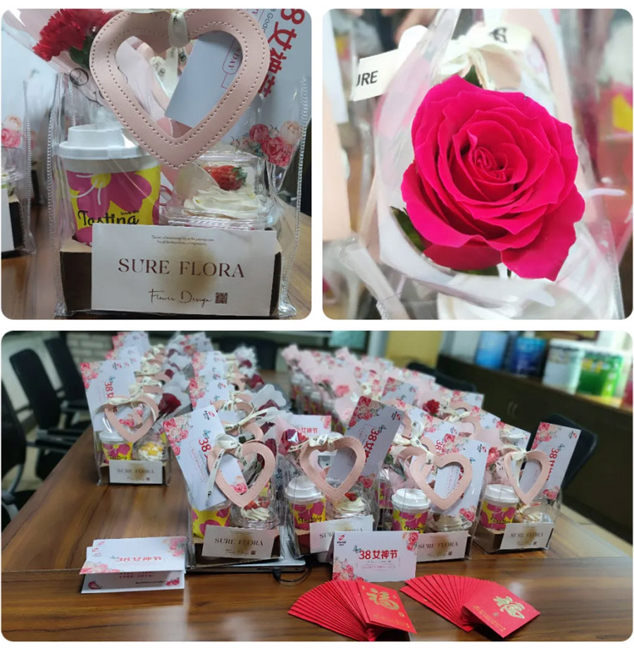 活动期间,常务副总付仲好、和利化工总经理戴志祥和总经办胥春燕为在岗女员工送上女神节的专属花束、节日红包等礼物,用实际行动传达了对和利女神们的温馨祝福和深切关爱。