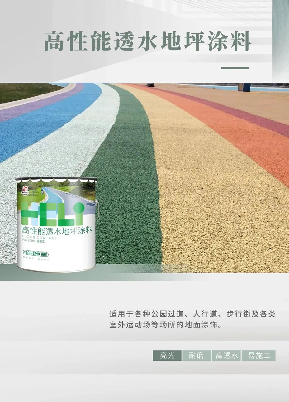 和利高性能透水地坪涂料,拥有出色的透水性,能将积水渗透到地下,有效防止积水和地面滑脱现象,保持干爽舒适的行走体验,同时,涂料膜色彩鲜艳、附着力强、硬度高、干燥快、施工方便快捷,正好能够满足人们的各类需求。