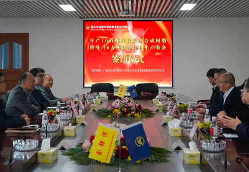 12月28日,广西和利涂料有限公司与佛山市金银河智能装备股份有限公司正式签约年产10万吨环保新型合成树脂暨年产6万吨新型涂料生产装备。和利化工董事长戴咏新、总经理戴志祥、生产总监李淳哲等公司高层出席了本次签约仪式。